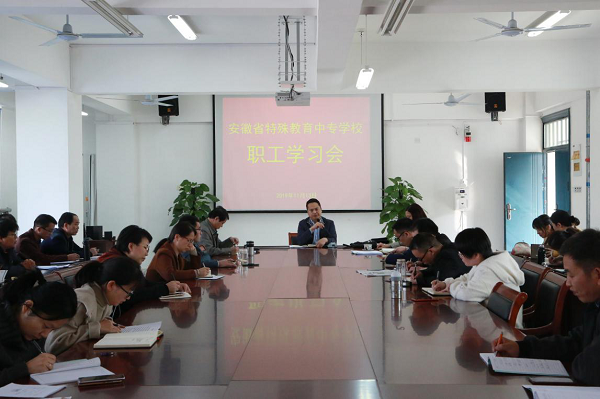郑伟强调,要坚持以习近平新时代中国特色社会主义思想为指导,将十九届四中全会各项部署尤其是涉及残疾人事业和教育教学工作的部署落地生根,为加快建成“区域一流、国内领先的高水平、显特色的残健融合特殊教育职业院校”而努力奋斗。