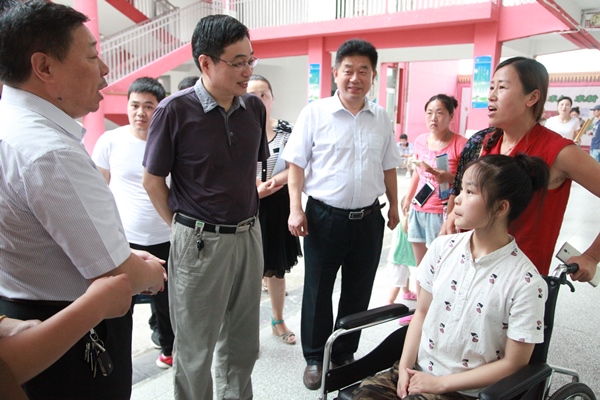 为方便边远市县身体残疾、行动不便的残疾人顺利参加入学考试,减轻市县残联组织难度,减少安全隐患,7月6日上午,省特教中专学校徐桃坤校长、鲍永清副校长带领相关工作人员赶赴宿州市送考。