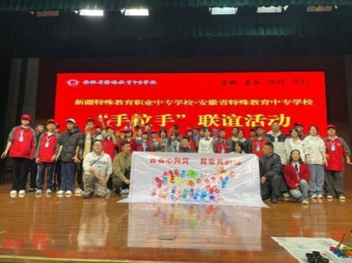 秋意渐浓,情谊更暖。10月28日上午,新疆特殊教育职业中专学校党总支书记、副校长秦柱花率领31名师生代表来校开展“手拉手”结对共建联谊活动。校领导郑伟、管进、庞春梗及相关处室负责人热情接待远道而来的客人。 在校领导的陪同下,新疆特教的师生们先后参观了教学楼、实训室、智慧教室和名师工作坊,校领导校领导详细介绍了我校的办学概况、历史沿革、党的建设成果,以及在人才培养、师资队伍建设、德育工作、职业培训和体育训练等方面的特色做法。 参观结束后,两校随即召开座谈交流会,围绕办学发展的核心议题展开深入探讨。会上,双方聚焦办学层次提升的目标路径、教育教学的创新方法、学生管理的精细举措、招生就业的优化策略,尤其针对智力障碍学生职业教育的推进、思政教学的提质增效等关键问题,坦诚分享经验、积极建言献策。一次次思想的碰撞、一个个务实的建议,为两校破解办学难题、提升办学成效提供了新思路、新方法。双方一致表示,将以此次联谊为新起点,进一步加强常态化交流合作,推动资源共建共享、人才互通互学,积极探索适宜两校长久发展的合作新模式,共同助力特殊教育办学水平迈上新台阶。 座谈落幕,一场充满温情与活力的联谊活动在报告厅精彩上演。活动伊始,两校学生按照残疾类别两两结对,手牵手分享学习生活心得,陌生感在真诚的交流中逐渐消散,友谊的种子悄然萌芽。随后,“同绘一幅画”环节两校学生共同在巨幅中国地图上按下彩色手印,指尖的温度凝聚成对祖国的热爱,斑斓的印记勾勒出民族团结的画卷;“同诵一首诗”环节齐声朗诵爱国诗篇时,铿锵有力的声音回荡在报告厅,传递出特殊教育学生自强不息的精神风貌;新疆学生热情介绍家乡的壮美风光与民俗文化,让在场师生深深感受到新疆的独特魅力;趣味十足的互帮互助小游戏,更让欢声笑语不断,两校学生在协作中增进信任,在互动中加深情谊。 联谊活动的尾声,两校学生一同走进工美、按摩、计算机专业课堂,开展“同上一堂课”观摩交流。在专业教师的指导下,大家近距离感受不同专业的教学特色,新疆学生还积极参与实操练习,与我校学生并肩学习、共同进步,专业知识的交流与技能的切磋,让这场联谊更添教育深度。活动最后,全体师生齐聚一堂合影留念,镜头定格下一张张灿烂的笑脸,也留住了这段跨越千里、温暖人心的特殊教育情谊。 此次“手拉手”联谊活动,为两地特殊教育学生搭建了展示自我、相互学习的平台,让两校的友谊在深度互动中愈发深厚。这既是一次校际教育合作的生动实践,也是一堂鲜活的民族团结教育课。未来,我校将继续与新疆特殊教育职业中专学校携手同行,以教育为桥梁,以情谊为纽带,持续推动交流合作走深走实,为特殊教育的高质量发展凝聚力量,共同书写民族团结与教育共进的美好篇章!